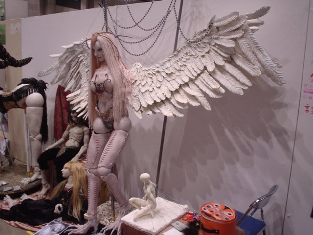 これはほぼ等身大に近い大きさの球体関節人形。羽の大きさがすごいです。