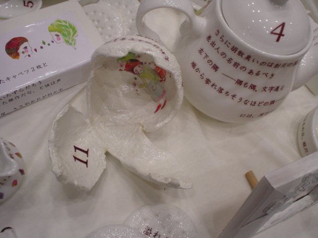 これは1冊の創作絵本の1ページづつをいろんなオブジェに描きなおした作品。番号どうりに読んでいくと絵本として読めます。