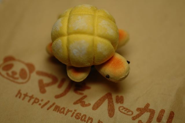 ほんものそっくりおいしそうなポーチやペン入れにも惹かれましたが、ぼくでは使いどころが無さそうと思い直し、メロンパンなカメさんマグネットを購入しました。