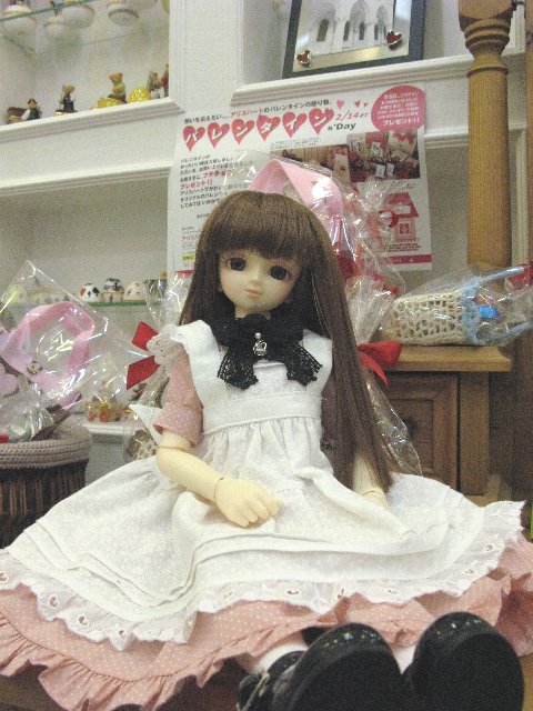 ちょうどバレンタイン・ディ直前で、バレンタイン・フェアーをしてらっしゃいました。うしろにポスターが見えますね。