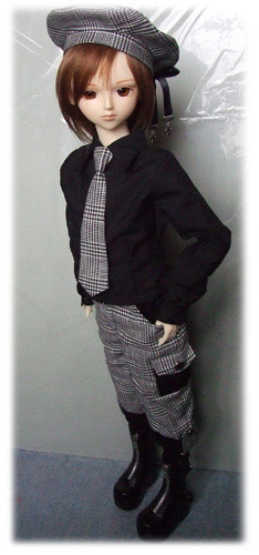 ツキノカケラ様のドレス「二人でお散歩」が縁でお知り合いになった、愁れいか様のご子息「風羽(かざは)」君です。(左上はうちのイイナです)